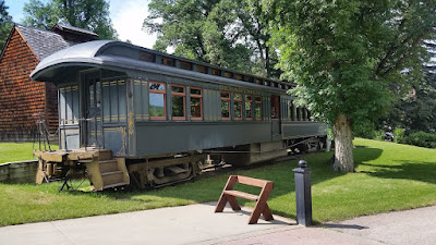 We took a motorcycle ride up to the Tri-State Museum in Belle Fouche, where admission is always free. This is a very small museum providing local history. For example, did you know the U.S. is the top producer of bentonite, with the majority mined between the Black Hills of SD and the Big Horn Basin of WY? Bentonite is a naturally-occurring mineral used for absorption of moisture in a variety of products, from Tabby's kitty litter to laxatives, from cardboard to putty. (Learning this type of trivia is great training for appearing on Jeopardy!) Belle Fouche also boasts being the Geographic Center of the Nation, and it erected a monument outside of the Tri-State Museum. Of course, driving to the ACTUAL location of the geographic center was not possible—it is down dirt roads in the middle of corn fields some 20 miles away.