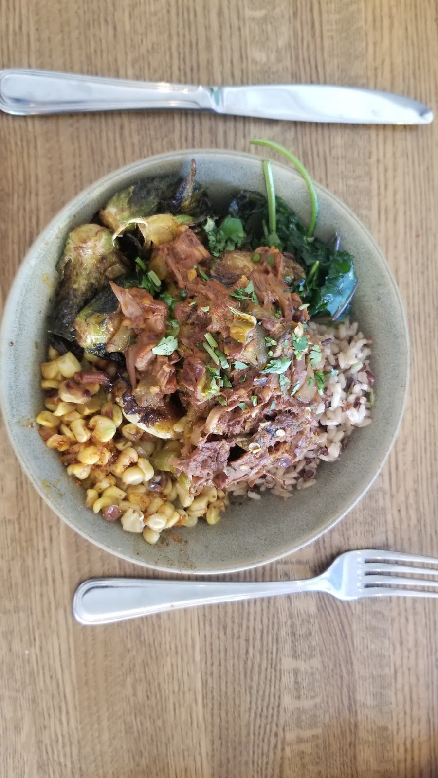 We refueled our bodies at Charro-Vida, a Mexican restaurant with indoor dining, bar, and patio seating that offers tons of plant-based options for Dad. Since it was so windy out (again!), we opted for the dining room, which kept folks socially-distanced by utilizing clear shower curtains. We ordered the guacamole and hummus as our appetizer. It contained all fresh ingredients and excellent veggie nacho chips sourced from a local artisan bakery. We all enjoyed build-your-own bowls as entrees, with Dad’s main base as jackfruit while Mom and I opted for grass fed beef. Terrific service and excellent food! Another winner!